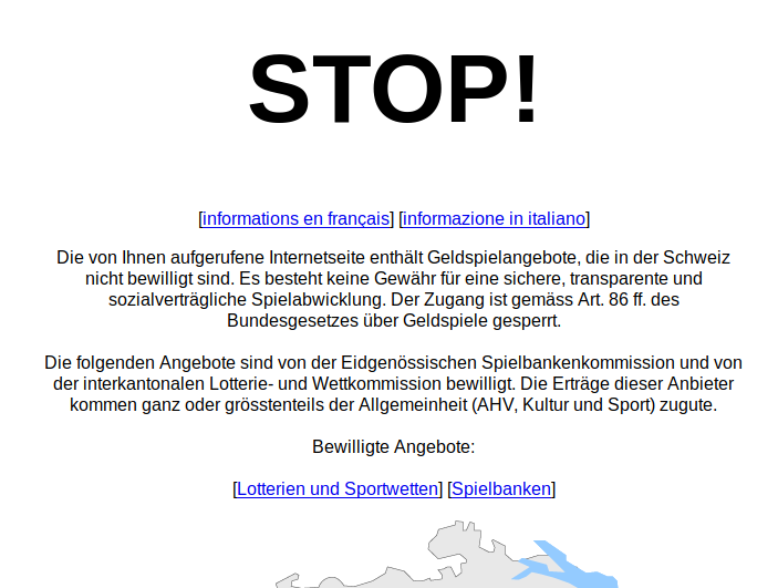 Text grösstenteils übernommen von Patrick Stählins Blog Seit dem 1. Juli 2019 sind die Schweizer Netzsperren gegen ausländische Glücksspielanbieter in Kraft. Jetzt erst wurden aber die Sperrlisten veröffentlicht. Es gibt zwei Listen, eine von der Eidgenössischen Spielbankenkommission (ESBK) und eine von der interkantonalen Lotterie- und Wettkommission (Comlot). Die Internetsperren sind in der Schweiz als DNS-Sperren implementiert, das heisst, der Provider als Taxifahrer vorgestellt setzt ein...